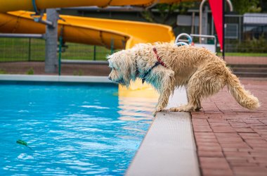 Dog swimming in the outdoor pool - questions and answers